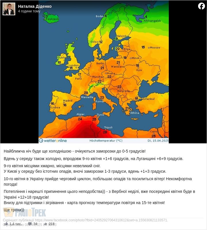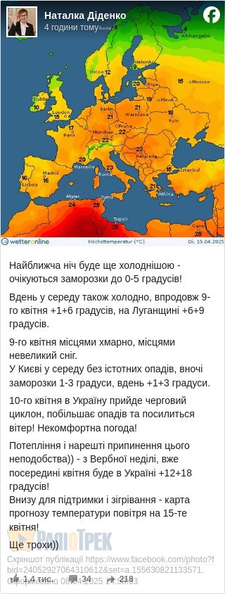 Завтра, 10 квітня, Україну накриє черговий циклон, який принесе посилення вітру та опадів, повідомила синоптик Наталка Діденко.