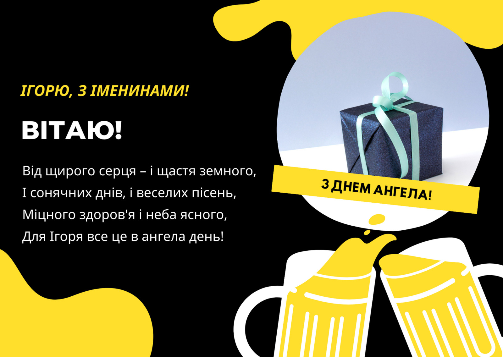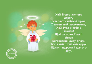 З іменинами, Ігорю! Нехай твій ангел буде твоїм реальним захисником — завжди поруч, завжди вчасно. Бажаю впевненості в собі, ясної голови й добрих людей поруч. Хай у серці буде спокій, а в житті — місце для мрій і рішень, які приносять радість.