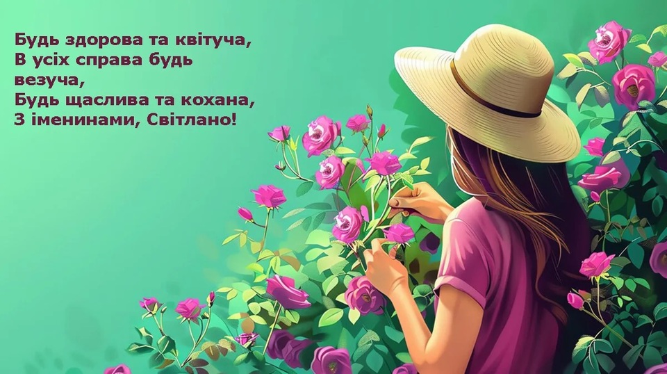 З іменинами тебе, Світлано! Нехай доля буде щедрою на приємні події, а кожен день приносить радість і натхнення. Хай у домі панують любов, затишок і благополуччя!