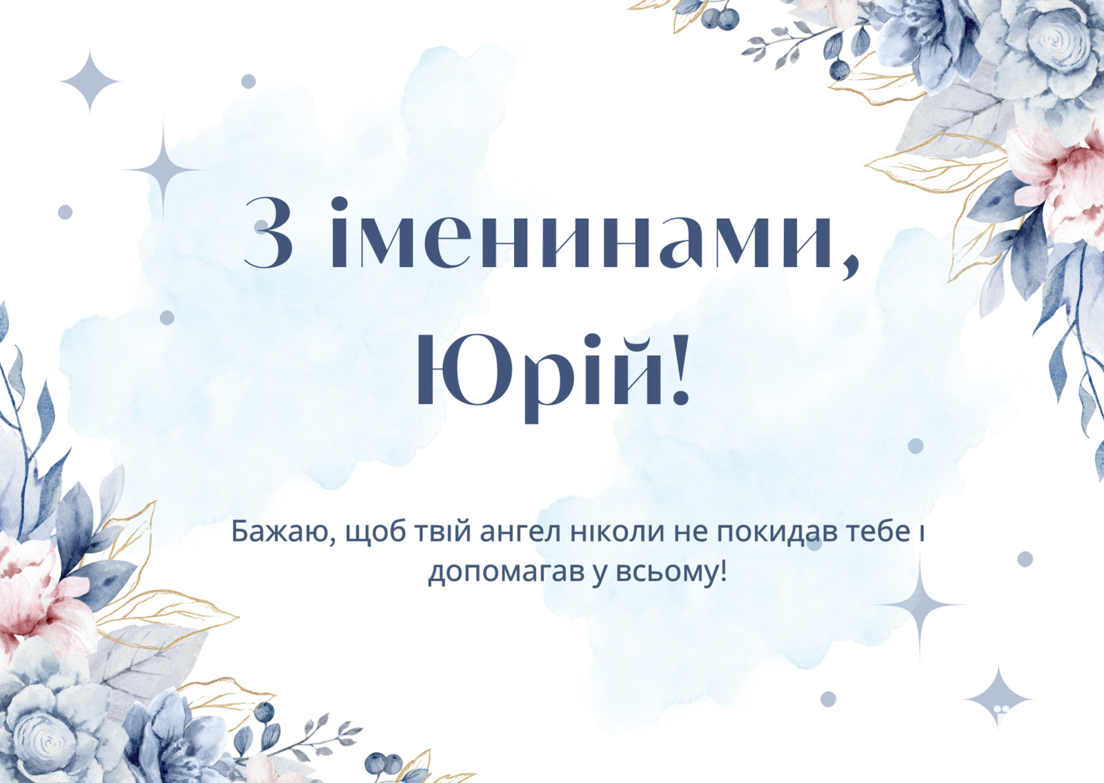 Щиро вітаю з Днем ангела, Юрію! Нехай кожен день приносить нові можливості, радість і натхнення. Хай у твоєму житті завжди буде місце для щастя, любові та великих перемог!