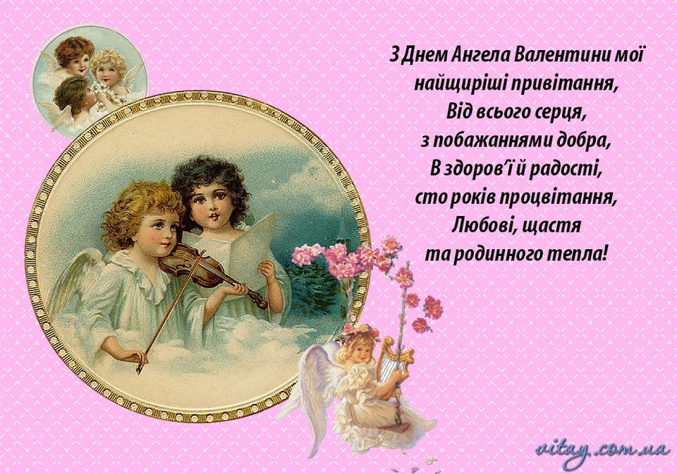 Вітаю тебе з Днем ангела! Бажаю, щоб ангел завжди тебе оберігав і допомагав в усіх твоїх справах: домашніх і робочих. Щоб всі твої починання були втілені в життя, щоб завжди супроводжували успіх і процвітання.