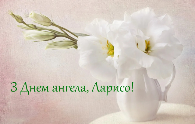 Ларисо, вітаю тебе з іменинами! Бажаю, щоб твій Ангел приносив багато тепла і світла, радості та любові. Нехай твоє життя наповнюється тільки приголомшливими подіями та чудовими враженнями. Достатку, кохання і благополуччя!