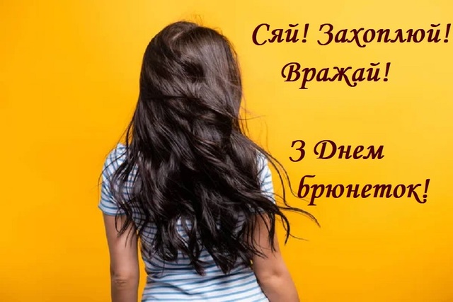 У день брюнеток вітаємо всіх власниць приголомшливого темного волосся. Вас природа наділила красою, розумом та жіночністю. Залишайтеся завжди у центрі чоловічої уваги! Будьте привабливі, неповторні та загадкові!