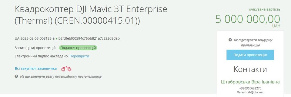 На придбання квадрокоптерів з міського бюджету, який наповнюють платники податків, спрямують 5 мільйонів гривень. Інформація про закупівлю з’явилася днями на сайті Прозорро.