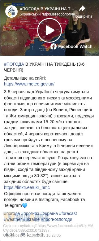 3-5 червня над Україною чергуватимуться області підвищеного тиску з атмосферними фронтами, що спричинятиме мінливість погоди. Про це повідомили в Українському гідрометцентрі.