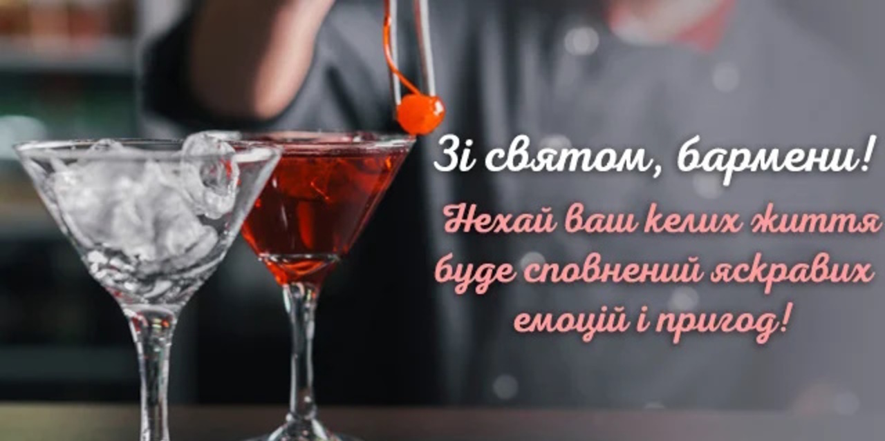 Бармене, з твоїм святом тебе! Нехай робота завжди кипить і завжди буде. Нехай тебе оточують тільки найкращі, душевні і щедрі люди, а банка з чайовими нехай ніколи не стає порожньою. Продовжуй дарувати людям настрій і змішуй напої щастя!