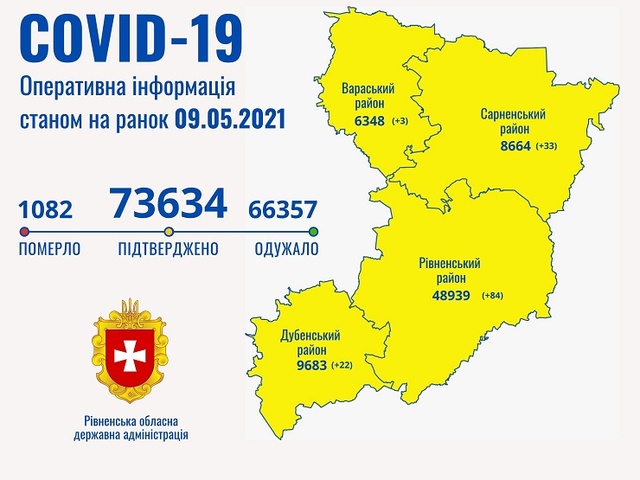В Рівненській області наразі маємо 73634 випадки захворювання на коронавірусну хворобу.