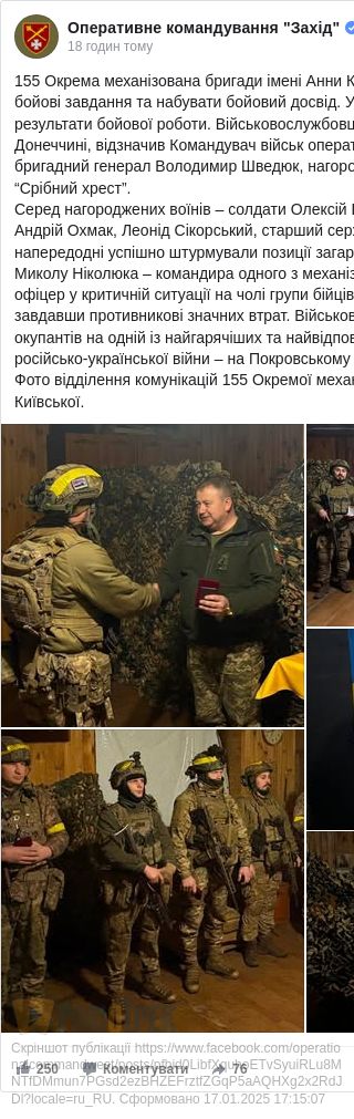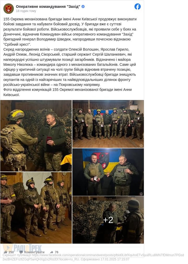 6 «Срібних хрестів» бійцям 155 ОМБр: Генерал Володимир Шведюк вручив нагороди (ФОТО)