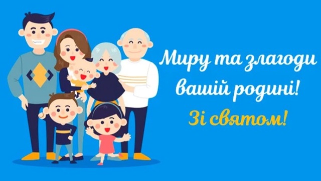 Родина - це найдорожчий і цінний скарб. Тому в всеукраїнський день родини бажаємо, щоб вона була тихою і затишною гаванню. Нехай підтримка найрідніших допомагає впорається з будь-якими труднощами. Нехай всередині сім'ї та в Україні буде мир і любов!