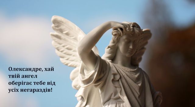 З днем ангела, Олександре! Нехай таким же сміливим і уважним буде твій Ангел по відношенню до тебе. Будь завжди цілеспрямованим, успішним, а небеса лише допомагають досягати цілей легко і просто. Вітаю!