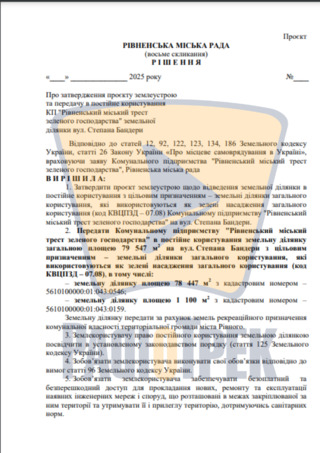 Майже 800 соток землі на Степана Бандери передадуть в постійне користування Тресту Зеленого господарства. Йдеться про територію гідропарку, що навколо озера.