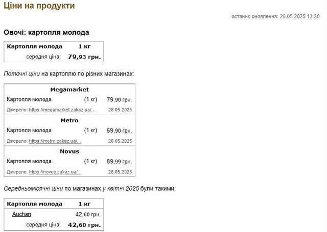 26 травня великі мережі супермаркетів продавали її в середньому по 79, що на понад 37 грн перевищує середню ціну квітня.