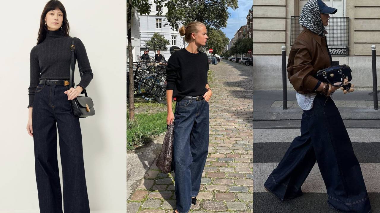 Насичені відтінки синього та чорного повертаються у моду. Джинси з темного деніму чудово виглядають як у робочих образах, так і у вечірніх. Тут головне — колір, а фасон може бути різним: від широкого до прямого.