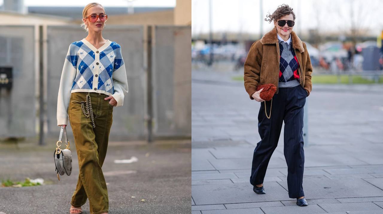 В’язані светри або кардигани з візерунком «аргайл» знову в тренді. Цей принт, який колись асоціювався з ретро-образами, повернувся в оновленій формі. Європейські модниці активно носять такі речі ще з початку жовтня — і поєднання з джинсами виглядає стильно та комфортно.