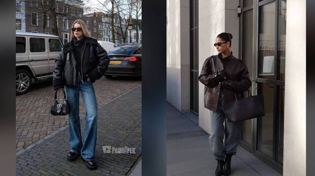 Класична шкіряна куртка — позачасовий елемент, який завжди додає впевненості. Вона чудово поєднується з джинсами будь-якого крою, особливо з мішкуватими моделями. Додайте чоботи на підборах — і отримаєте стильний, трохи бунтарський, але водночас елегантний лук.