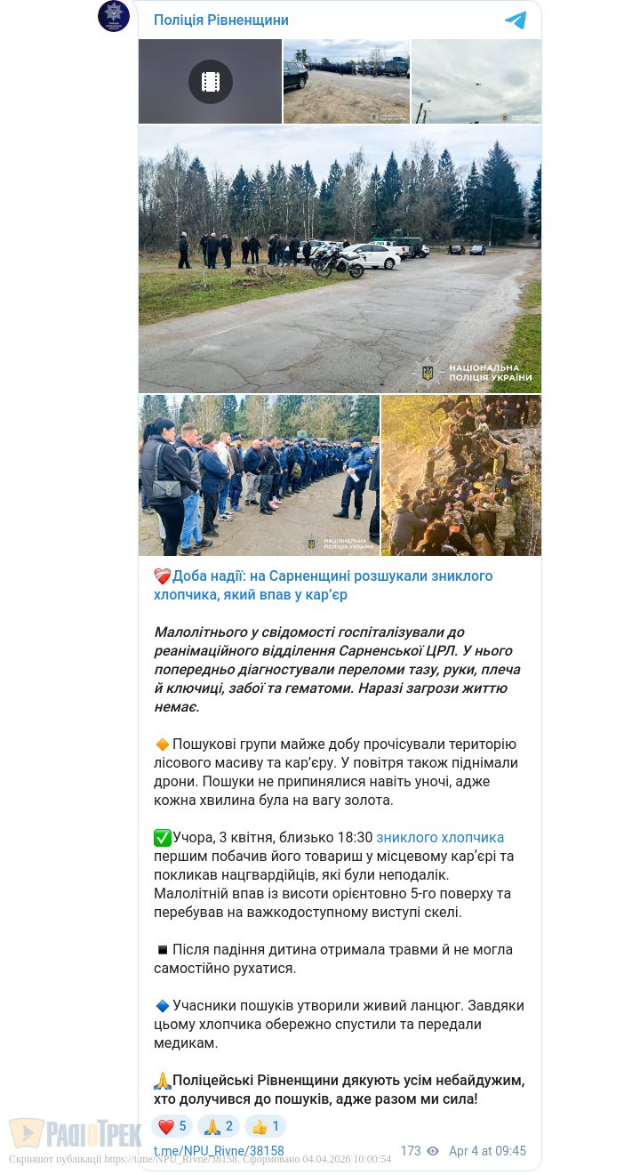 Майже добу пролежав на уступі в кар’єрі: подробиці зникнення 10-річного хлопчика на Сарненщині