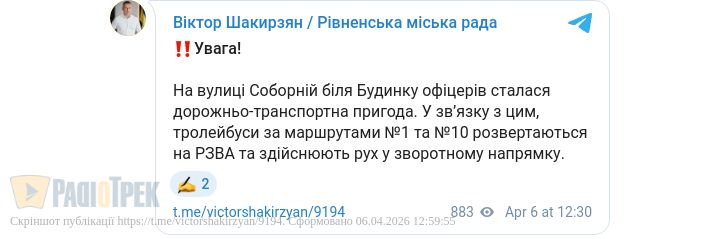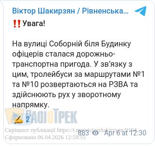 Рух тролейбусів на вулиці Соборній біля Будинку офіцерів відновлено, маршрути №1 та №10 курсують за звичним графіком.