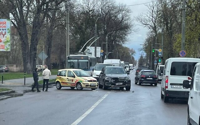 Біля Будинку офіцерів зіткнулися два легковики, рух у напрямку центру фактично заблокований.