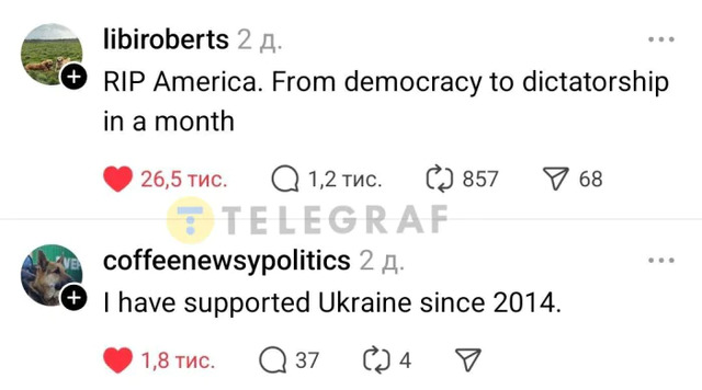Крім того, американці публікують у соцмережах пости на підтримку України та незгоди з політикою Трампа відносно війни Росії проти нашої країни.
