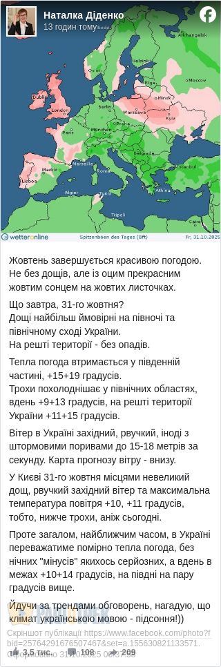 До слова, як повідомив Телеграфу синоптик Ігор Кібальчич, аномальне потепління прийде в Україну на початку листопада. До +19 градусів в країні буде трохи довше ніж тиждень.