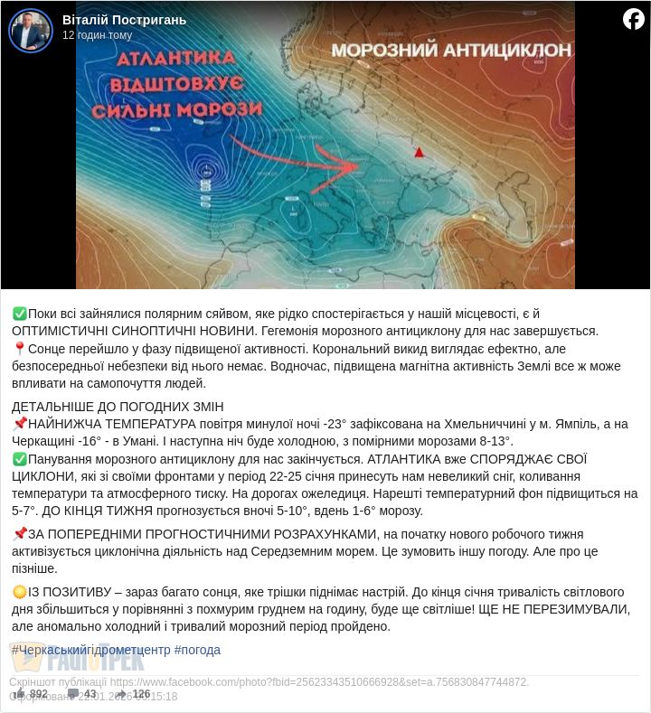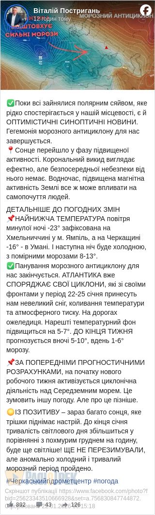 Аномально холодний і тривалий морозний період в Україні завершився. Про це повідомив синоптик із Черкащини Віталій Постригань.