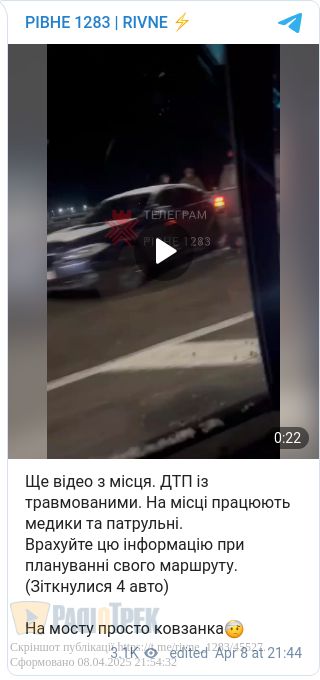 У патрульній поліції Радіо Трек повідомили, що внаслідок автотрощі постраждали троє людей. На місці події працюють поліцейські.