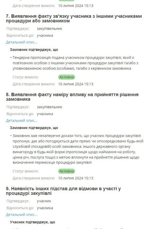 Причиною цього стали 9 порушень, зокрема, виявлення факту зв'язку учасника з іншими учасниками процедури та корупційні ознаки.