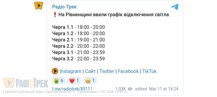 У зв’язку з погіршенням ситуації в енергосистемі держави Укренерго дало команду запровадити графік погодинних відключень електроенергії сьогодні ввечері у Рівному та області: