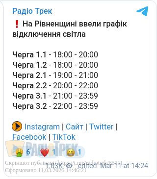 Актуальні зміни графіка протягом дня, а також номер своєї підчерги можна перевірити за посиланням: https://www.roe.vsei.ua/disconnections