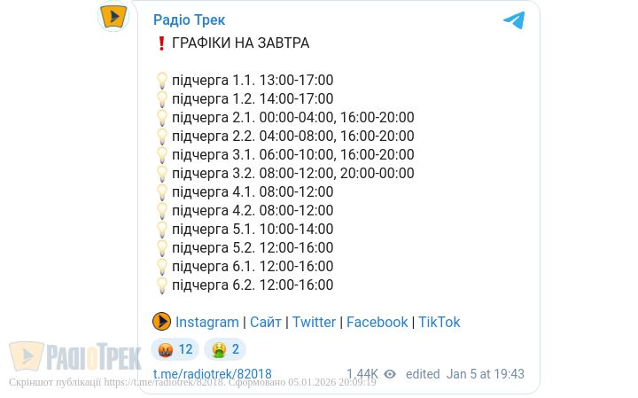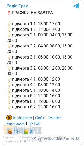 Графіки відключень електроенергії діятимуть завтра на Рівненщині. Світловимикатимуть на дві-чотири години для споживачів усіх черг, подекуди двічі.