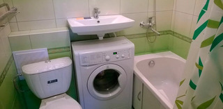 Саме тому встановлювали короткі ванни довжиною близько 120 см, а всі елементи розташовували максимально щільно один до одного. У результаті сьогодні в такому приміщенні важко знайти місце навіть для вузької пральної машини.