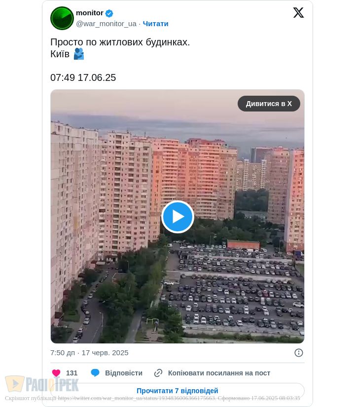 На відео — момент удару шахеда по житловому будинку на Позняках.