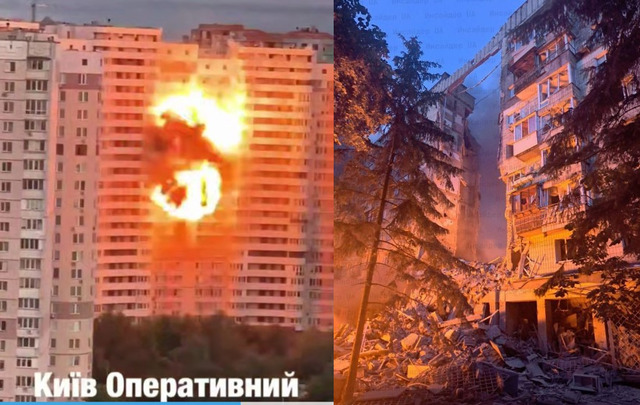 За інформацією глави МВС Клименко, попередньо, в Києві сталось пряму влучання балістики по багатоповерхівці.