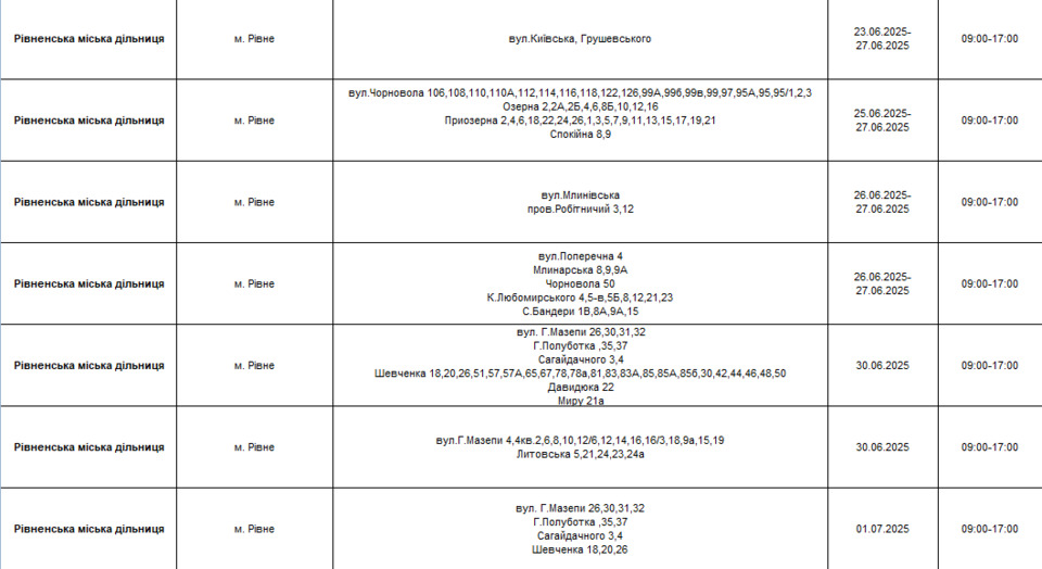 У зв’язку з плановими ремонтними роботами буде відсутнє електропостачання на частині вулиць Рівного. Світла не буде на таких вулицях: