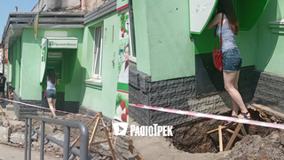 Біля банку у Рівному земля пішла з-під ніг – буквально (ФОТО)