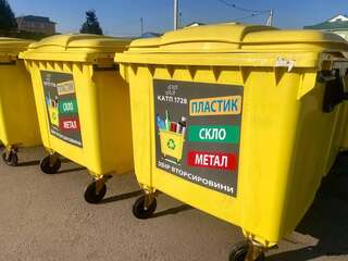 Це будуть яскраві жовті баки - куди треба викидати скло, пластик й метал. Вміст цих баків передаватимуть підприємцю для подальшого сортування, перероблювання та утилізації.