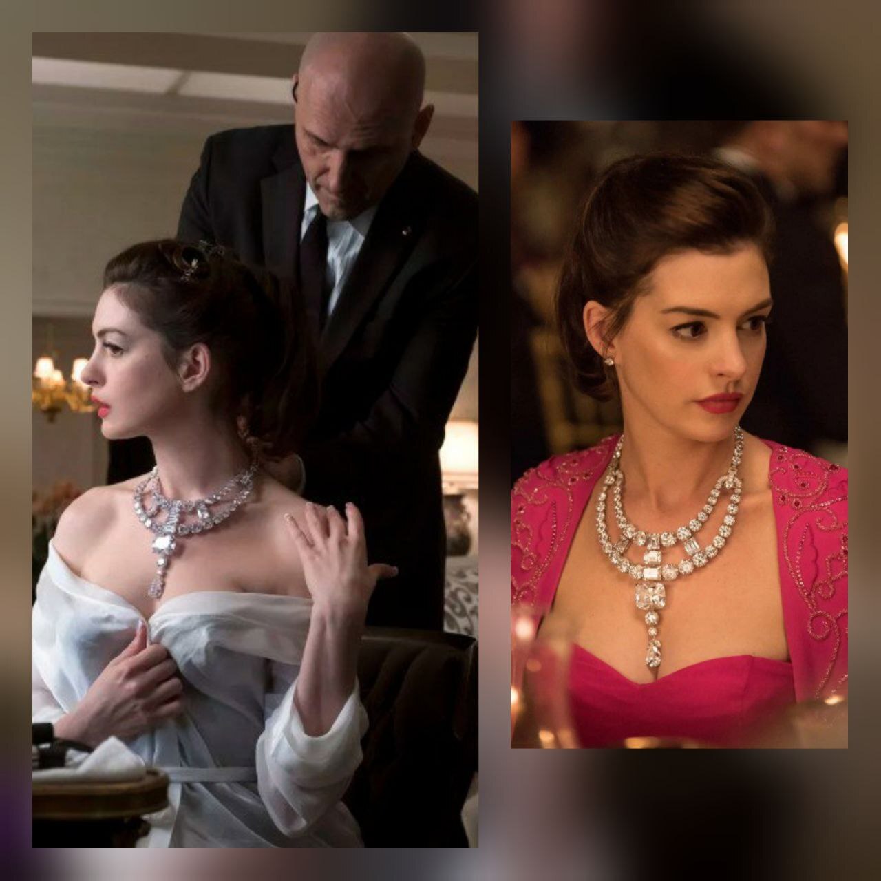 На ній сяяла репліка одного з найзнаковіших витворів ювелірного дому Cartier — прикраси, створеної у 1931 році. У центрі кольє — винятковий діамант вагою 80 каратів, обрамлений меншими діамантами. Цей ювелірний шедевр має не лише історичну, а й кіноспадщину: його копію носила Енн Гетевей у стрічці «8 подруг Оушена».