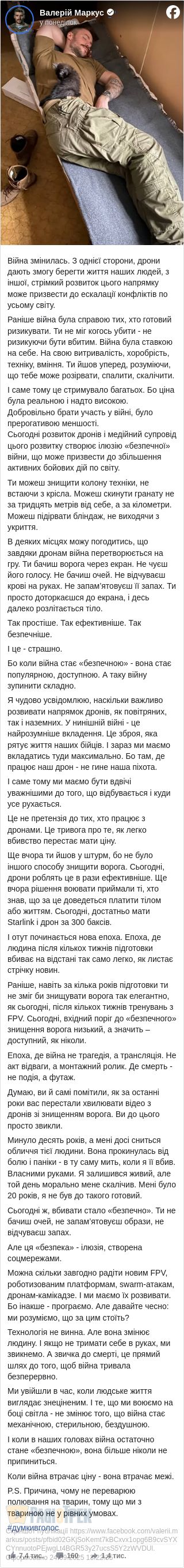 Нині ж мережею швидко поширюється допис Валерія Маркуса, який пропонує геть інший погляд на проблему дронів.