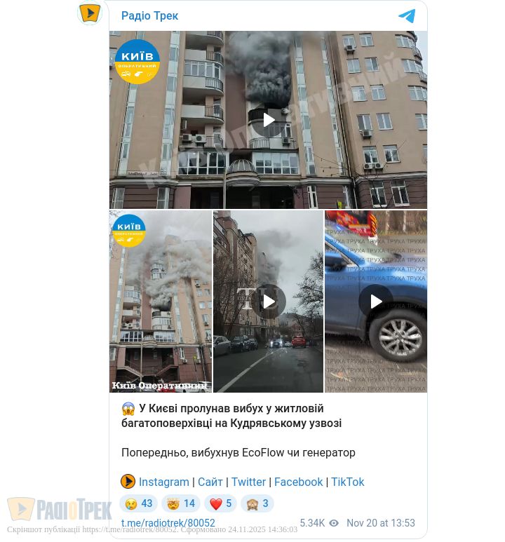 Місцеві ЗМІ та соцмережі також повідомляють про інші інциденти із зарядними станціями — наприклад, про задимлення квартири під час роботи EcoFlow в Україні, без інформації про тяжкі травми.