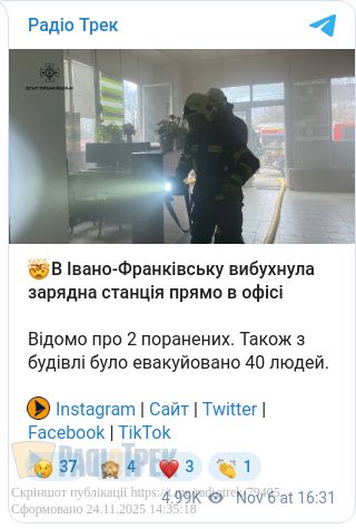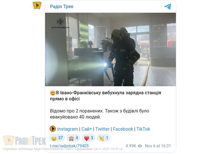 Попередня версія ДСНС — загоряння сталося саме через вибух зарядної станції, остаточну причину ще з’ясовують.