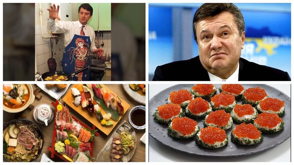 Віктор Янукович, навпаки, мав дещо специфічний смак, зумовлений його важким дитинством та перебуванням за ґратами. Наприклад його улюбленими стравами були котлети, але зроблені переважно з м’яса кабана, також щука, фарширована червоною ікрою. Дружина Януковича, Людмила, розповідала, що він дуже любив вареники з маком та вишнями. Більшість продуктів для столу Януковича вирощували у підсобному господарстві в Межигір’ї. Там також діяла унікальна система подачі їжі, а через страх замаху він користувався послугами персональних дегустаторів.