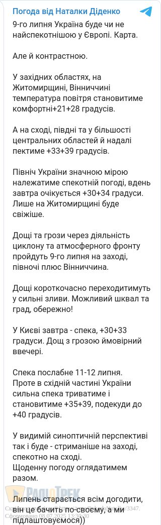 У більшості українських областей спека послабне вже 11-12 липня.