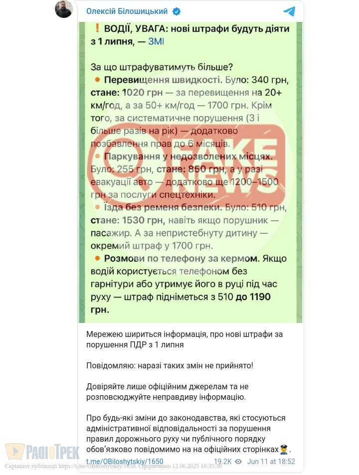 У фейкових повідомленнях про нові штрафи були такі розцінки: