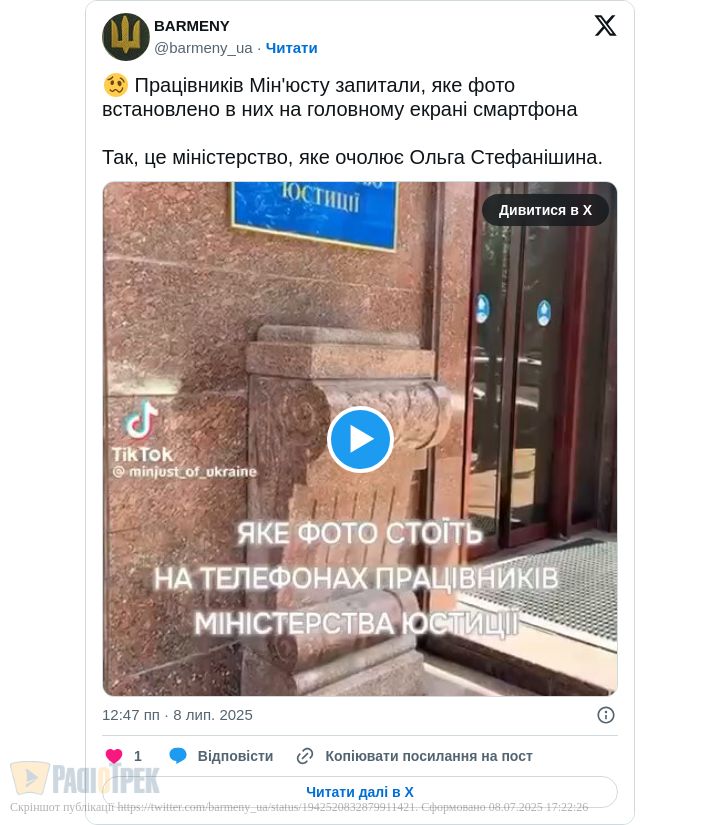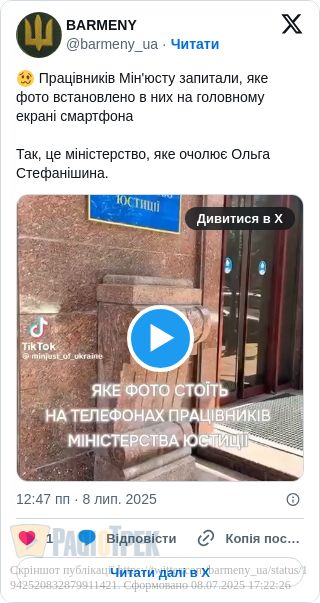 І от у всіх в тому міністерстві на заставці стоїть не фото дружини, чоловіка чи дитини; не улюблений песик чи якийсь пейзаж, а…