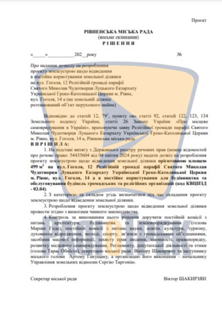 З відповідною заявою до міської ради звернулася Релігійна громада парафії Святого Миколая Чудотворця Луцького Екзархату Української Греко-Католицької Церкви