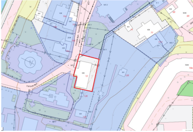 Ділянка знаходиться під нежитловою спорудою на Гоголя 12, це за органною залою.