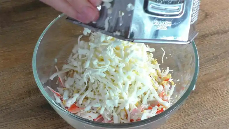 Яйця натріть на великій терці, так само подрібніть сирок.