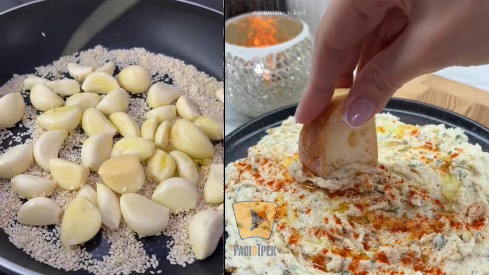 На сковорідці підсмажте кунжут разом із зубчиками часнику в оливковій олії.
