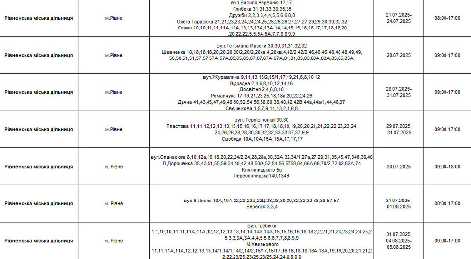 У зв’язку з плановими ремонтними роботами буде відсутнє електропостачання на частині вулиць Рівного. Світла не буде на таких вулицях: