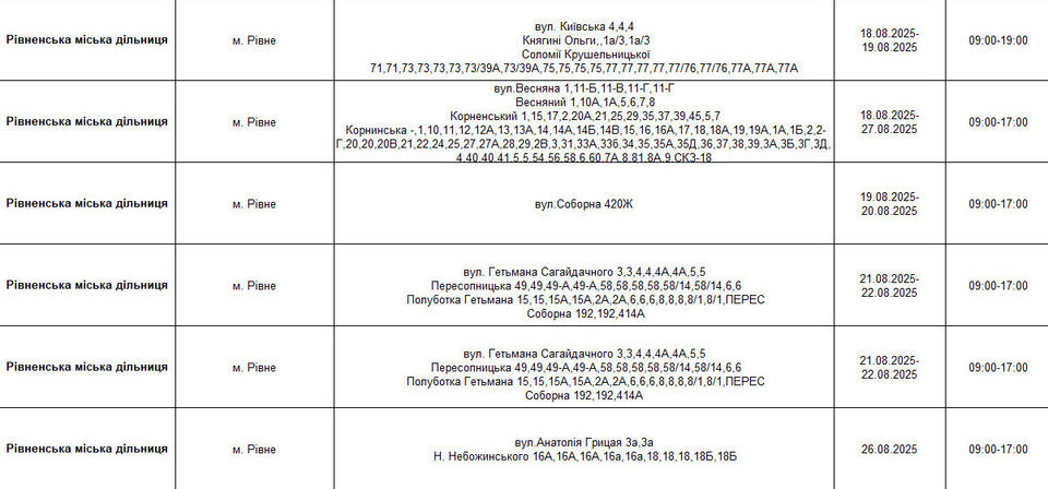 У зв’язку з плановими ремонтними роботами буде відсутнє електропостачання на частині вулиць Рівного. Світла не буде на таких вулицях: